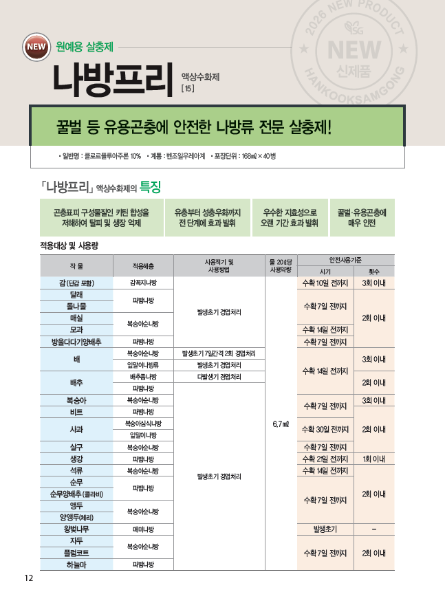 꿀벌 등 유용곤충에 안전한 나방류 전문 살충제!